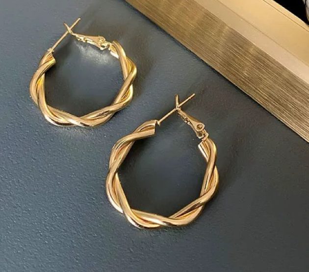 These 18K gold plated twisted hoop earrings combine bold, statement style with a delicate braided design. Inspired by minimalist European fashion, they feature a lightweight yet luxurious structure that suits both casual and formal wear.